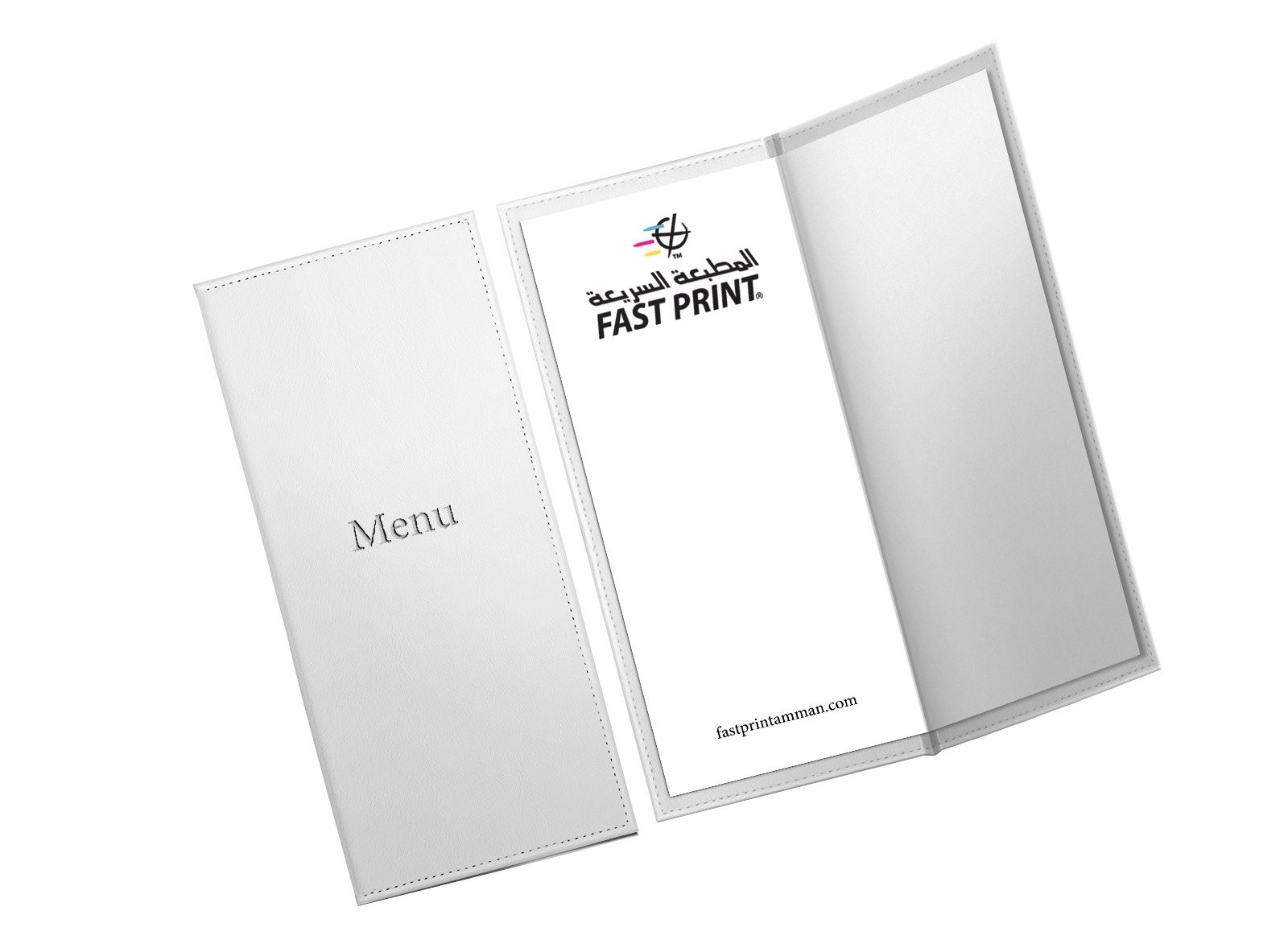 Get high-quality menus with full-color, double-sided pages printed with your choice from 115 to 135 gsm or 200 to 300 gsm inside pages and a durable 350 gsm cover with the option of laminated covers. or of your choice either hardcover or leather covers.